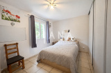 Côté extérieur, la grande parcelle de 1 400 m², majoritairement arborée, dispose d’un espace terrasse orienté plein sud pour profiter pleinement de l’ensoleillement, ainsi que d’un terrain de pétanque.