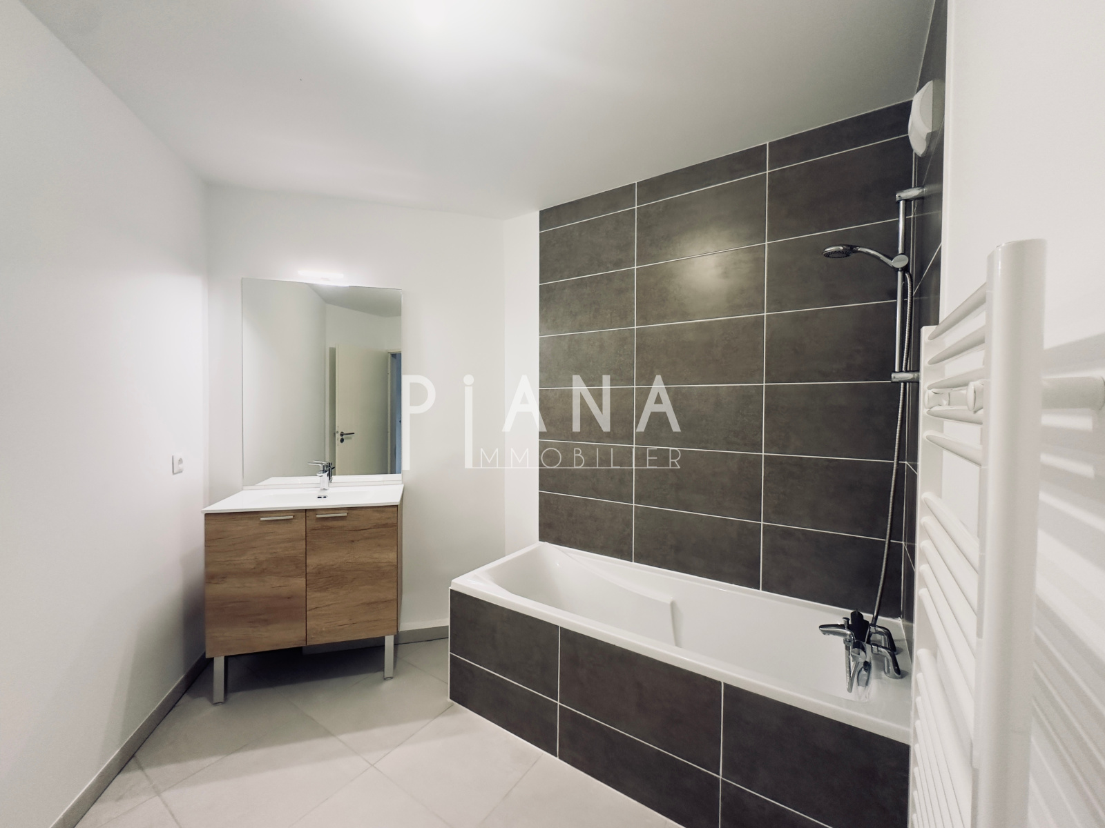 Ce magnifique T3 de 65,9m² est composée d'une entrée de 4,40m², d'une vaste sejour avec cuisine ouverte de 28m², de deux chambres de 14 et 12m² dont l'une donnant sur la terrasse, une salle de bain avec baignoire de 6,10m², et un WC indépendant de 2,4m².