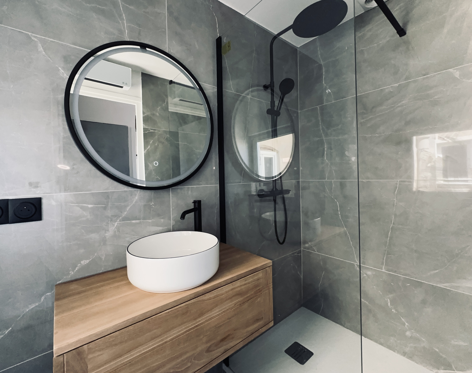 - Un coin nuit séparé par une verrière, et une salle de bains moderne au style raffiné,