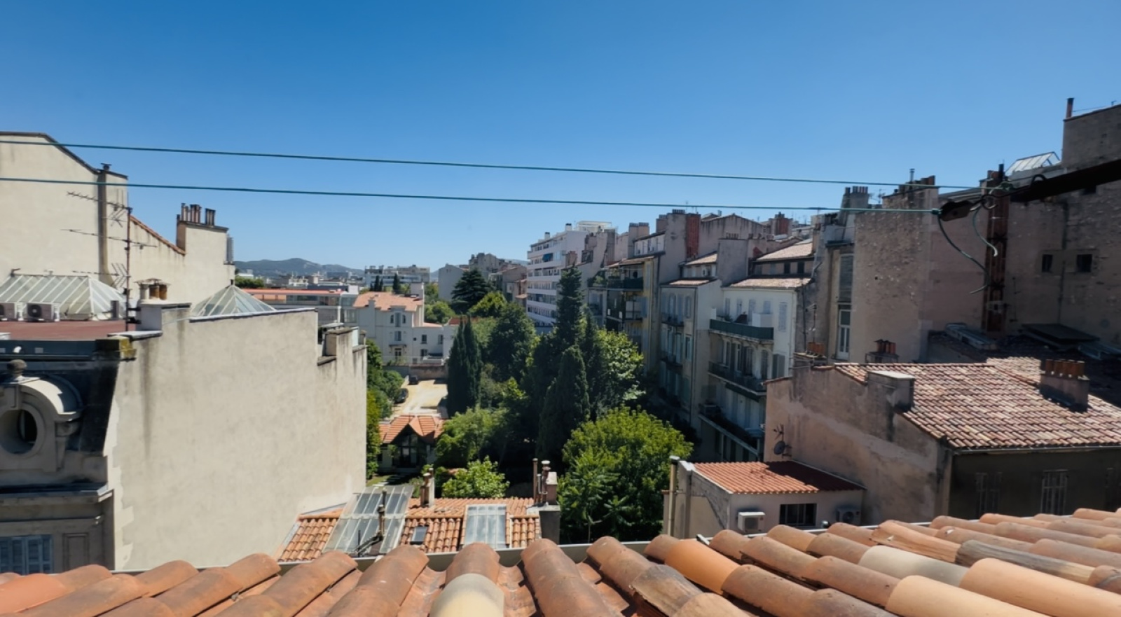 - Une pièce de vie lumineuse avec vue panoramique sur les toits de Marseille,