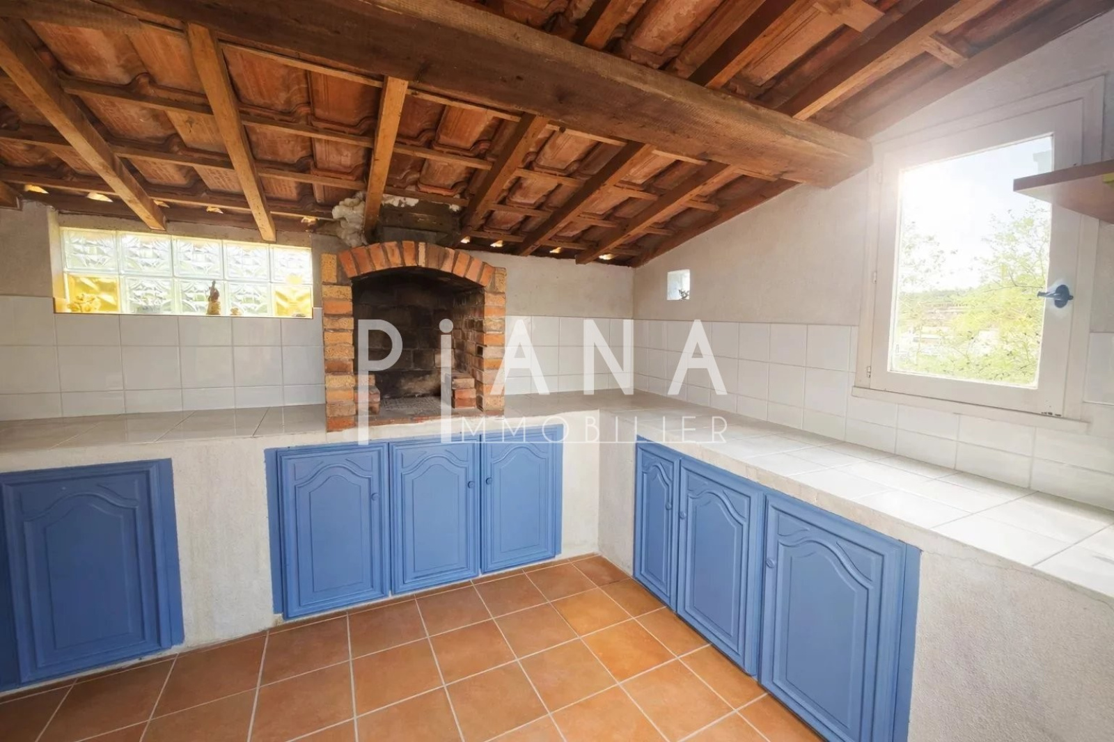 Cette maison dispose d'une pièce de vie, d'une cuisine, de 3 chambres, d'une salle de bain et un d'wc séparé. A l'extérieur une grande terrasse, une cuisine d'été attenante à l'habitation, un atelier et un garage.